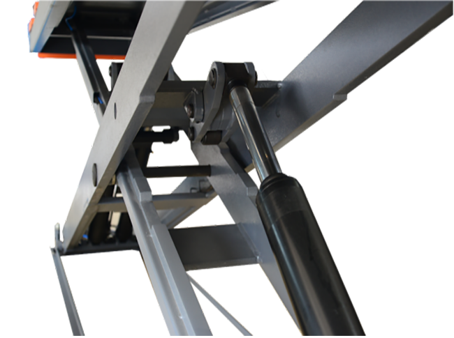 ◆ 8 cylinders, double hydraulic balance system(main lift)and mechanical safety with automatic unlock are equipped